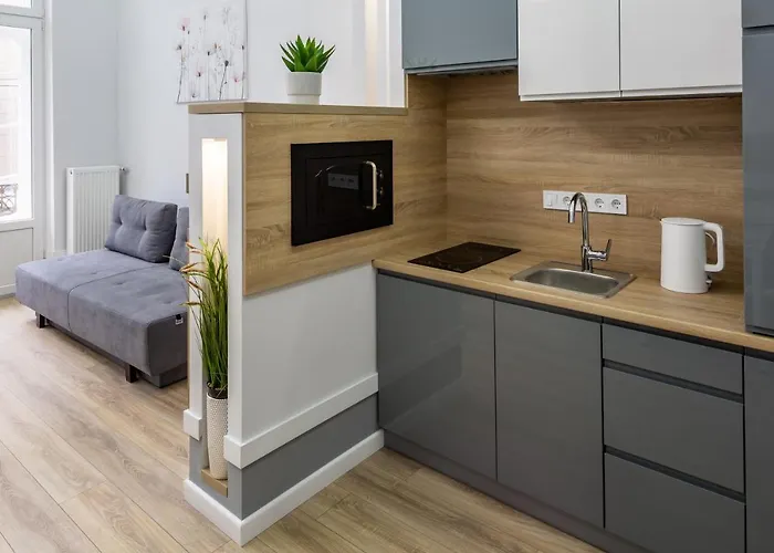 An equipped kitchenette with a microwave oven, an electric kettle, and a refrigerator is available for those who prefer making their own meals. Green serves European cuisine right at this apartment. Lviv International airport is located 10 km away, while Svobody avenue bus station is very close to the accommodation.